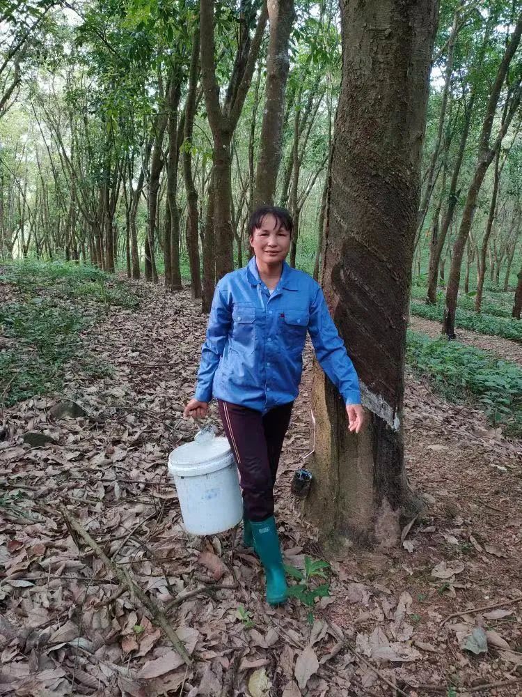 2004年,趙坤霞入農(nóng)墾割膠,由于對橡膠樹的熱愛,她將低產(chǎn)樹培養(yǎng)成高產(chǎn)樹,個人產(chǎn)量從2004年的3.5噸到2019年的8噸,再到2022年的13.9噸,產(chǎn)量持續(xù)提升。當(dāng)上隊長后,趙坤霞帶領(lǐng)大家修膠園道路,為職工減輕工作負(fù)擔(dān)。她還主動把高產(chǎn)樹位讓給其他膠工,繼續(xù)承包低產(chǎn)膠樹培養(yǎng),在她的帶領(lǐng)下,全隊干膠產(chǎn)量大大提高。